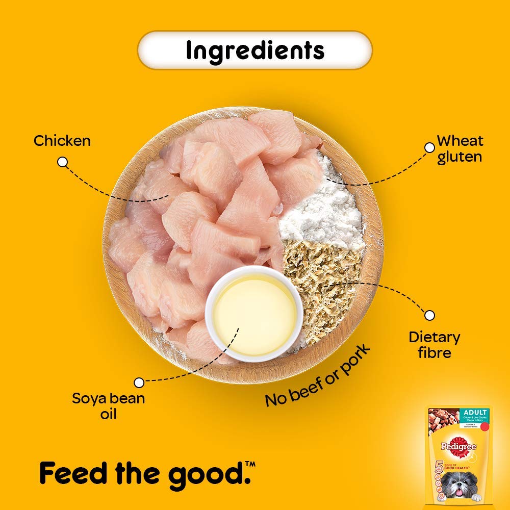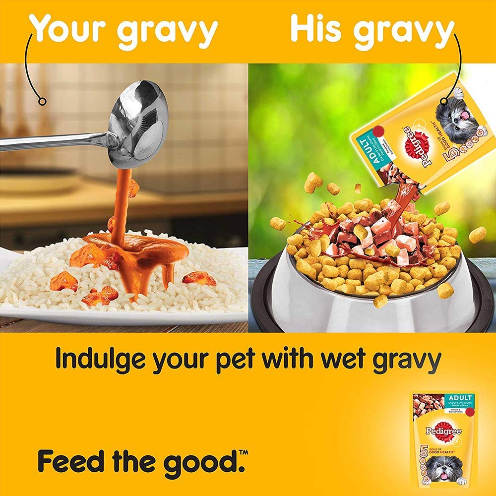 Pedigree Adult Wet Dog Food, Chicken & Liver Chunks in Gravy, 15 Pouches (15 x 80g)